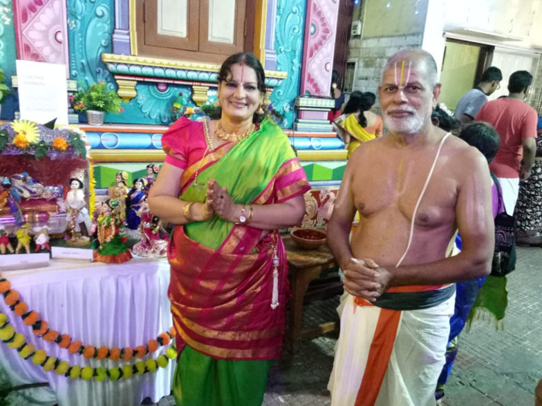 Swamy Velukudi felicitating CHITRA RAMAN on her creation of Ramanuja story in soft toys at fine arts sabha Chembur, Mumbai