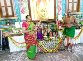 Felicitated on display of dolls of various vahanam in Brahmo Utsavam by Smt Chandra Ramani at Ahobali mutt